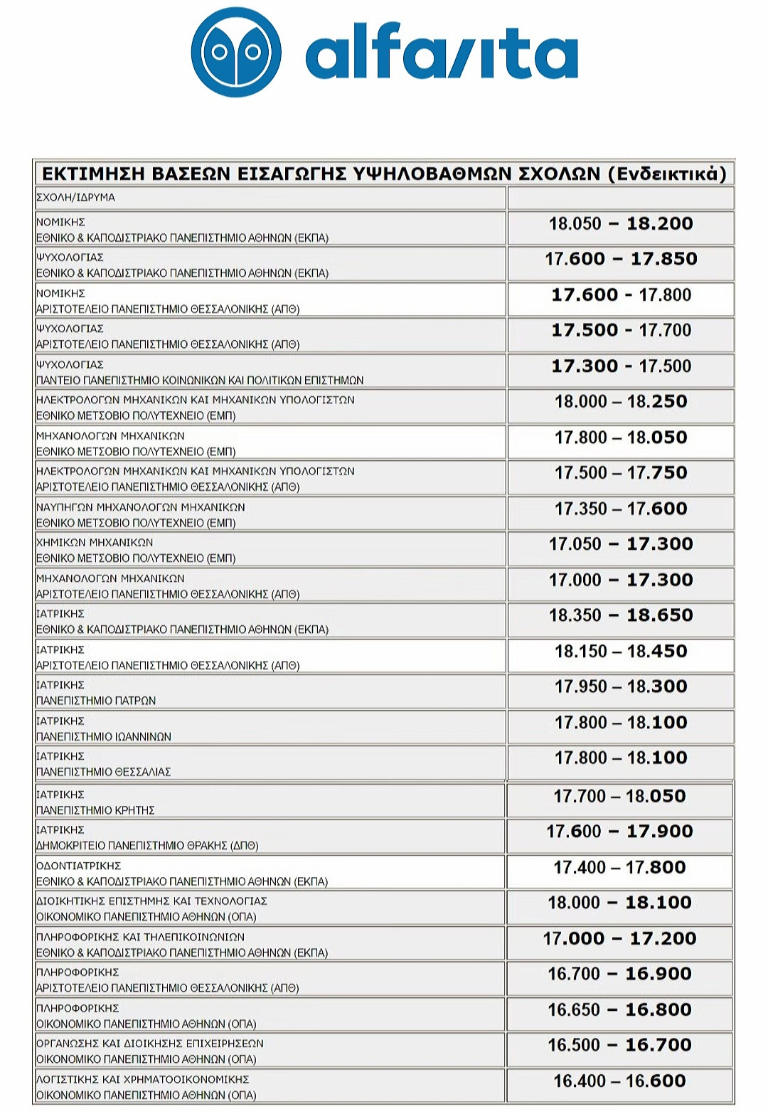 Παντως απο επισημες εκτιμησεις βασεων δεν εχω δει ιατρικη αλεξανδρουπολη πανω απο 18100