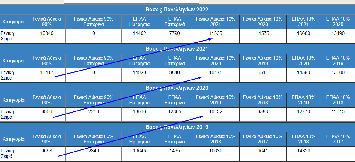 η διαφορα βασεων απο την αντιστοιχη του 90% κυμαινεται μεταξυ 1600 (2021) μοριων και 3700 (2022)..παρα πολυ ψηλα