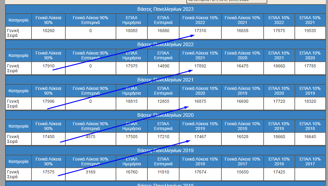 Η εικονα καλυτερων βαθμων φετος δειχνει ανοδο ως και 300 μορια