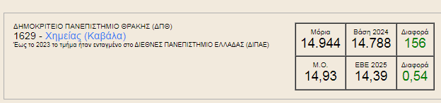 Μαθηματικα 35%... Φετος, και στο δευτερο πεδιο υπηρχαν περισσοτερα παιδια κατω απο το 10, σε σχεση 2024 και 2023. Τωρα οπως ειπα παρα πανω, εφοσον η σχολη δεν ειναι υψηλοβαθμη (15355 βαση 2024), πιστευω δεν θα το επηρεασει τοσο.... Ισως λιγο να ανεβαζε την βαση. Αλλα ποτε δεν ξερεις, ειναι αναλογα και ποιοι την θελουν την σχολη. Αν θεωρησουμε πως την θελουν γενικα, τα ατομα οπως περυσι π.χ, τοσο ισως μια μικρη ανοδο η πτωση +-150 μοριων ή σταθεροτητα. Πιστευω πως δεν θα δουμε τα μορια του 2023 σε αυτην την σχολη.