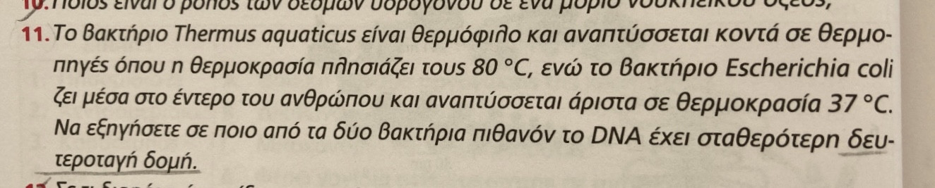 Μεγαλύτερη θερμοκρασία έχει αυτό με τους περισσότερους δεσμούς υδρογόνου ( περισσότεροι δεσμοί γιατί χρειάζεται πιο μεγάλη θερμοκρασία για την αποδιαταξη του )άρα θα έχει και την σταθερότερη δευτεροταγη δομή.