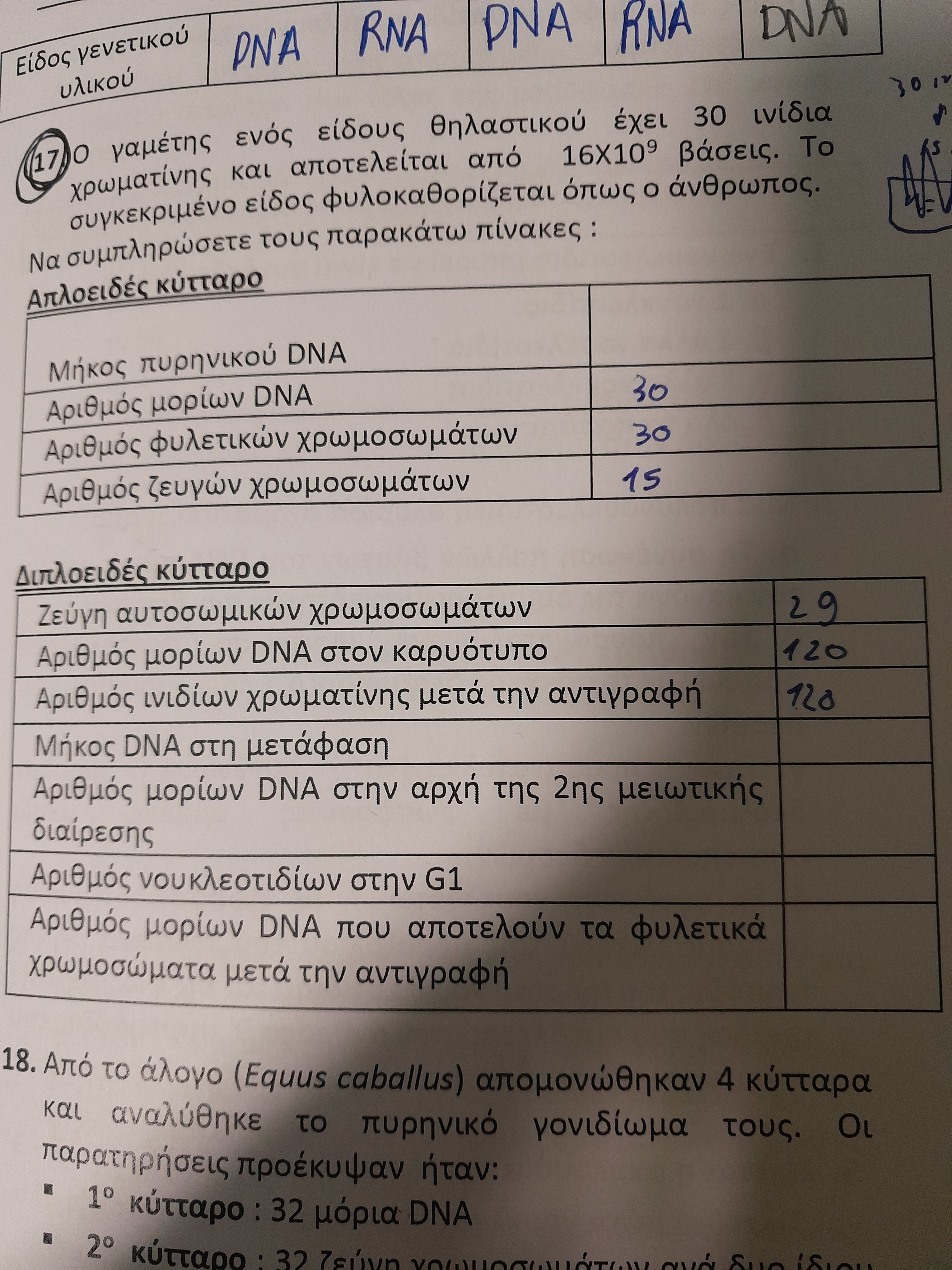 Eπίσης εβαλα 4 στον αριθμο μοριων DNA για τα φλυετικα χρωμοσωματα μετα αντιγραφης