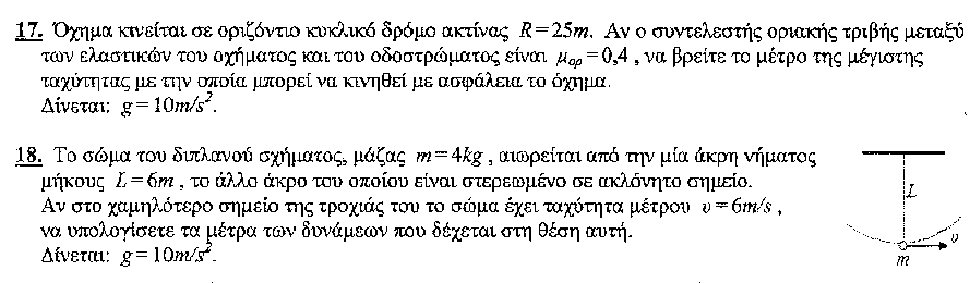 (Στην 1η άσκηση είναι ΣFR = Τστ και στη 2η ΣFR = Τνημ - Β. Πάντα FK = mυ²/R)