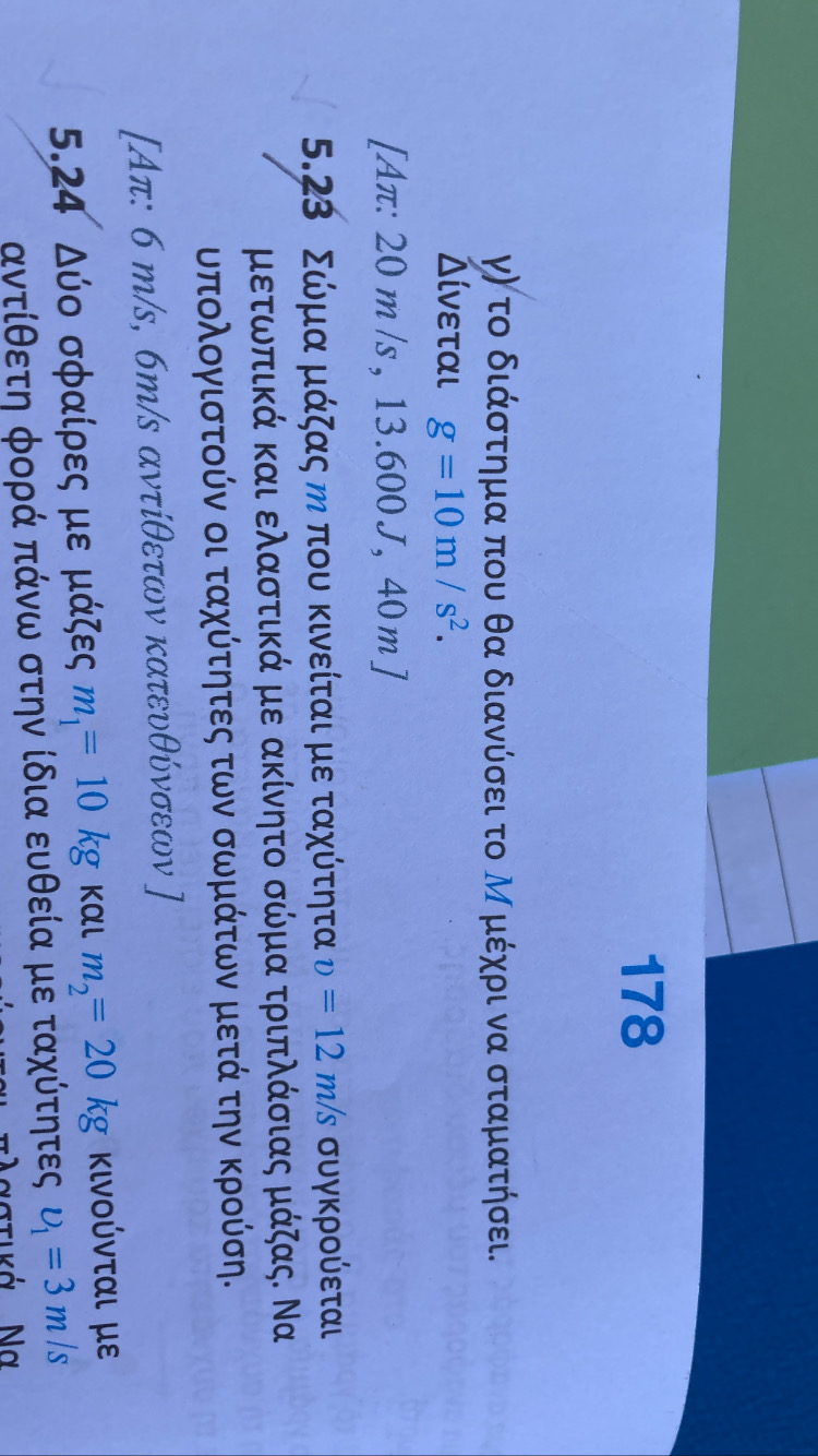 Κατά τη γνώμη μου δε χρειάζεται, εφόσον έχεις ορίσει θετική φορά, αφού είναι αλγεβρική τιμή και όχι μέτροΑν μου βγει το αποτέλεσμα της u1’=-6 και της u2’=6 πρέπει να δικαιολογήσω την διαφορά στα πρόσημα σωστά; Να πω δηλαδή, «Το (-) στη u1’ υποδηλώνει πως η Σ1 μετά την κρούση αλλάζει φορά/ έχει αντίθετη φορά της αρχικής» ή μπορώ να το παραλείψω;