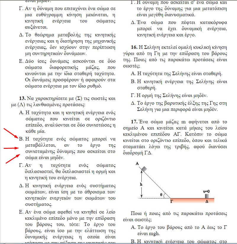 H ταχύτητα ενός σώματος μπορεί να μεταβάλλεται, αν το έργο της συνισταμένης δύναμης που ασκείται στο σώμα είναι μηδέν.