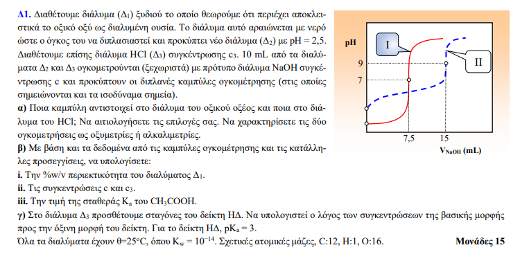 Μετά από την καμπύλη II που αντιστοιχεί στο οξικο οξύ βρίσκεις ότι το ph είναι 9 στο ΙΣ , κάνεις την εξουδετέρωση και βρίσκεις σχέση για την ka.