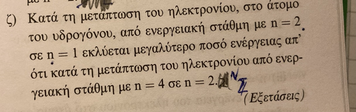 Από τον τύπο που δίνει την ενέργεια του ηλεκτρονιου στο άτομο του υδρογόνου με πράξεις μπορείς να το δεις. Βρίσκεις τα ΔΕ και τα συγκρίνειςΜόλις το είδα αυτό, ευχαριστώ πολύ. Το έκανα ήδη αλλά για κάποιο λόγο δεν μου βγαίνει. Η νέα συγκέντρωση που να μου δίνει το σωστό αποτέλεσμα.