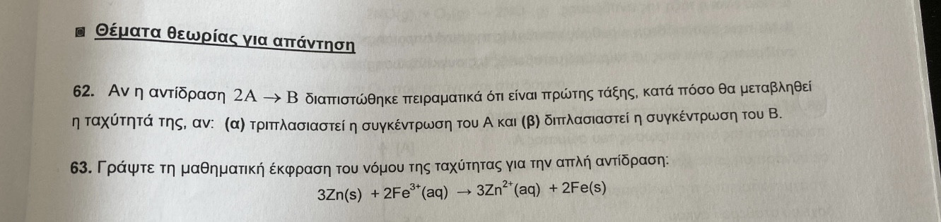 62 Αν τριπλασιαστεί η συγκέντρωση του Α θα τριπλασιαστεί και η ταχύτητα (?)