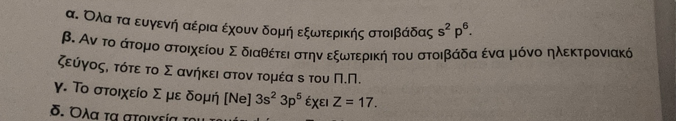 Ναι τα βρήκα. Το α το έβαλα λάθος διότι το πρώτο ευγενές αέριο (He) τελειώνει σε 1s2. Το γ το έβαλα σωστό διότι κάνοντας ηλ. δομή από την αρχή μέχρι το 3p5 βγαίνει όντως Ζ=17.Joji
