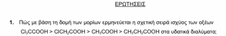 αν δεν κάνω λάθος, όσο αυξάνεται η ανθρακική αλυσίδα, δηλαδή όσο αυξάνονται τα άτομα άνθρακα, αυξάνεται η ισχύς του +Ι επαγωγικού φαινομένου. Επομένως το 4ο μόριο έχει ισχυρότερο +Ι επαγωγικό φαινόμενο από το 3ο, (άρα το 4ο έχει μικρότερο -Ι επαγωγικό φαινόμενο από το 3ο,) άρα το 4ο έχει μικρότερη ισχύ ως οξύ από το 3ο.Επίσης, στα δυο πρώτα εδώ κατάλαβα γιατί το πρώτο έχει μεγαλύτερη ισχύ από το δεύτερο αλλά όχι γιατί το τρίτο έχει μεγαλύτερη ισχύ από το 4ο.