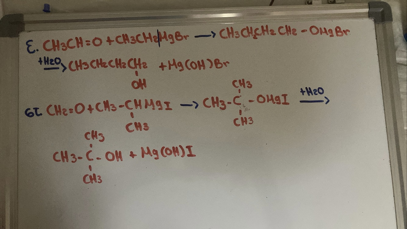 3) Κετονη +grignard -> ενδιάμεσο προϊόν -> (+H20) τριτοταγης αλκοόλη