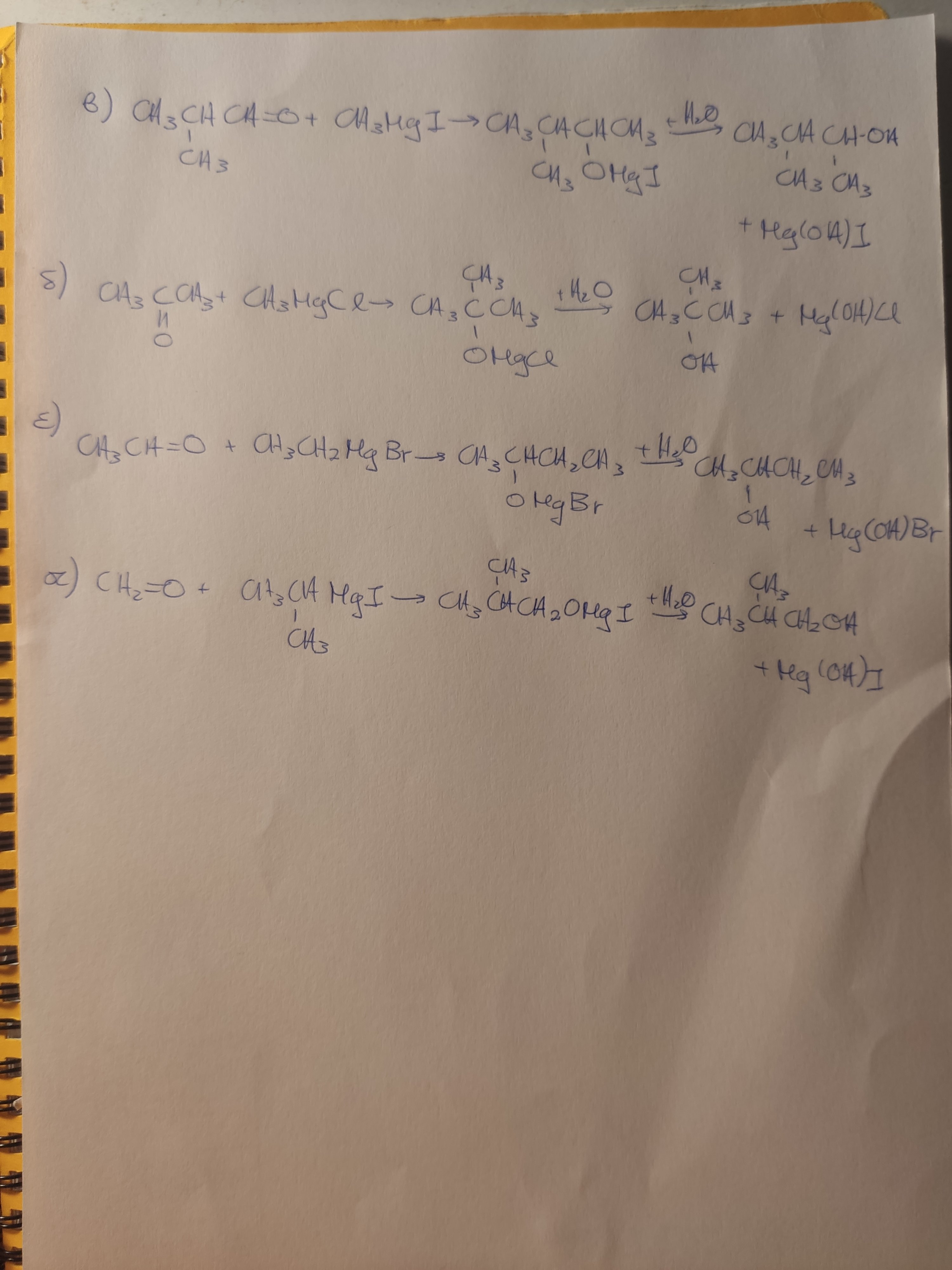 2) Αλλη αλδευδη+ grignard -> ενδιάμεσο προϊόν -> (+H2O) δευτεροταγης αλκοόλη
