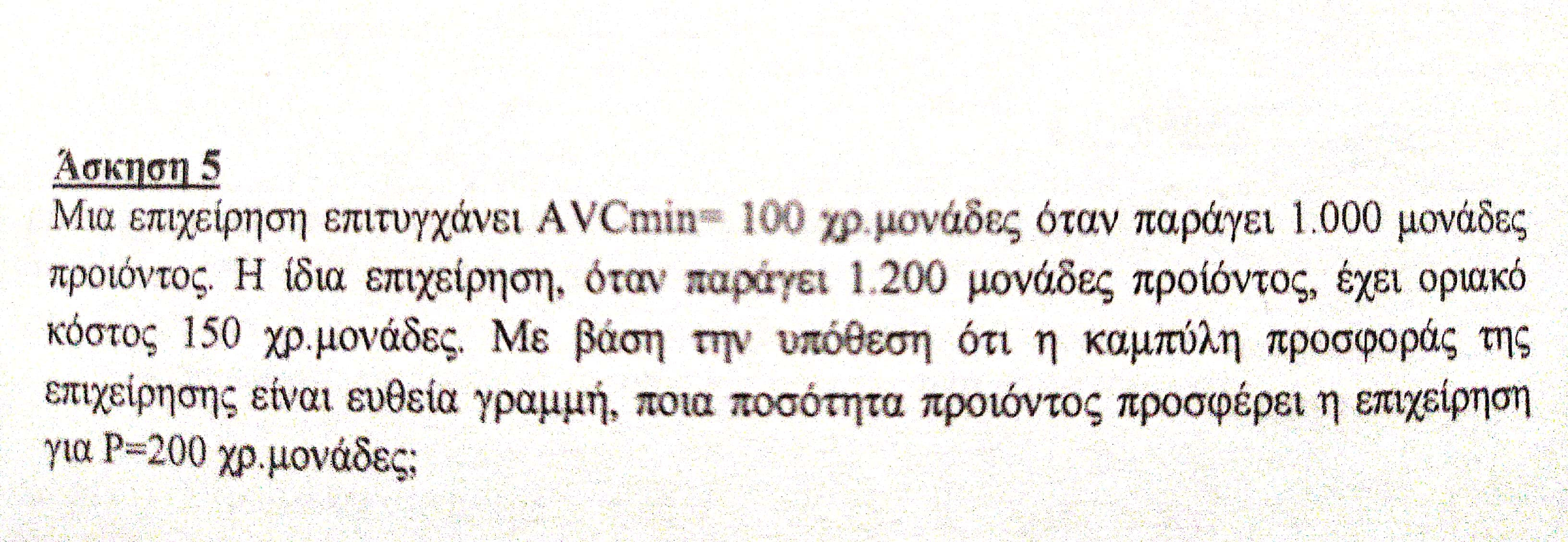 Αφού η καμπύλη προσφοράς ξεκινά εκεί όπου avc=100, το avc θα είναι ίσο με το mc λόγω σχήματος σωστά; Ανέλυσα όλα τα στοιχεία που μου έδινε και δεν προέκυψε κάτι για το Qs όταν p=200, οπότε μήπως είναι κάτι τέτοιο;