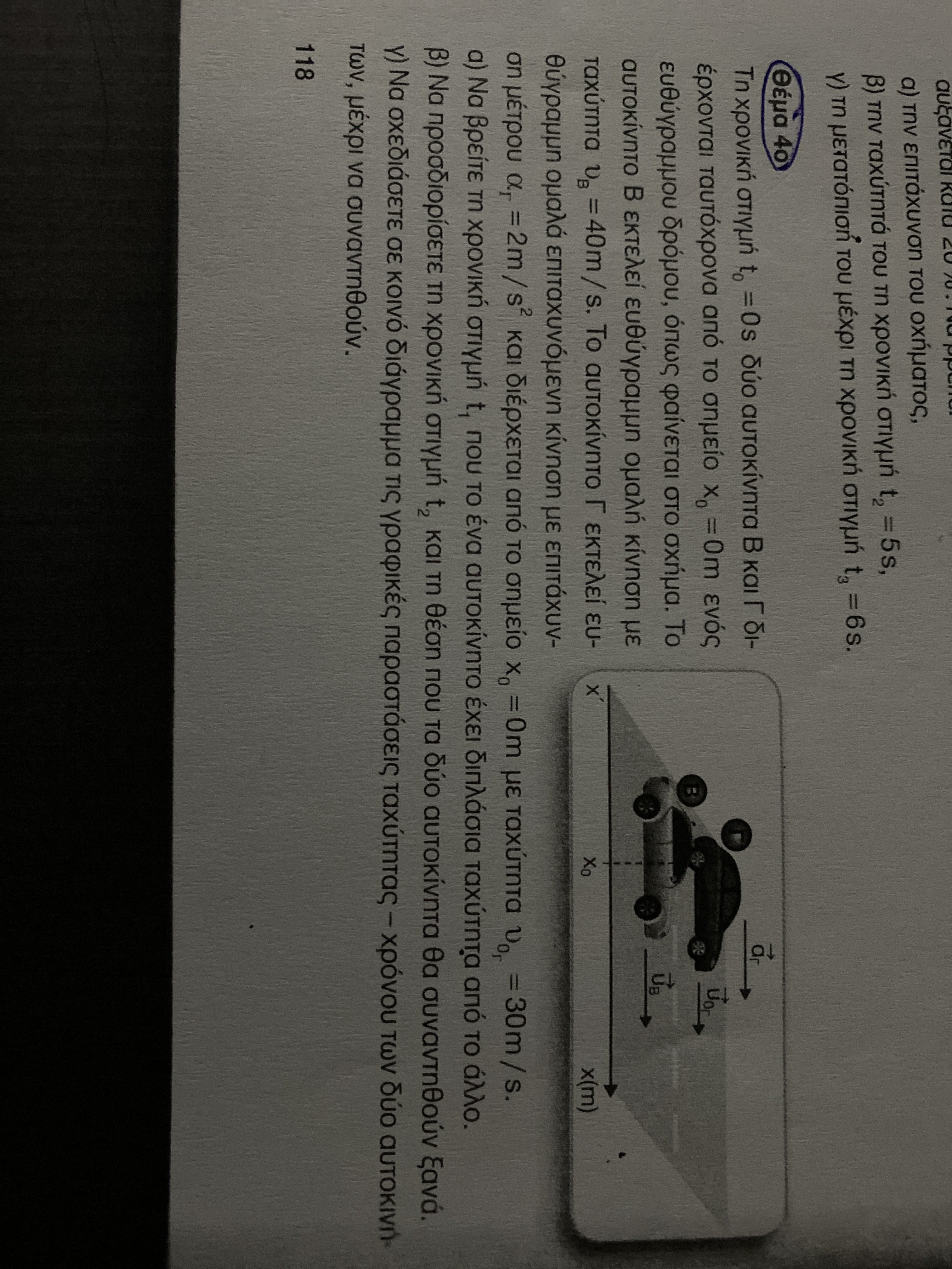 Απο οτι βλεπω, το ενα σωμα εκτελει ευθυγραμμη ομαλη κινηση με σταθερη ταχυτητα U=40m/s και το αλλο ευθυγραμμη ομαλα επιταχυνομενη κινηση με επιταχυνση α=2M/S^2 κ u0=30m/s