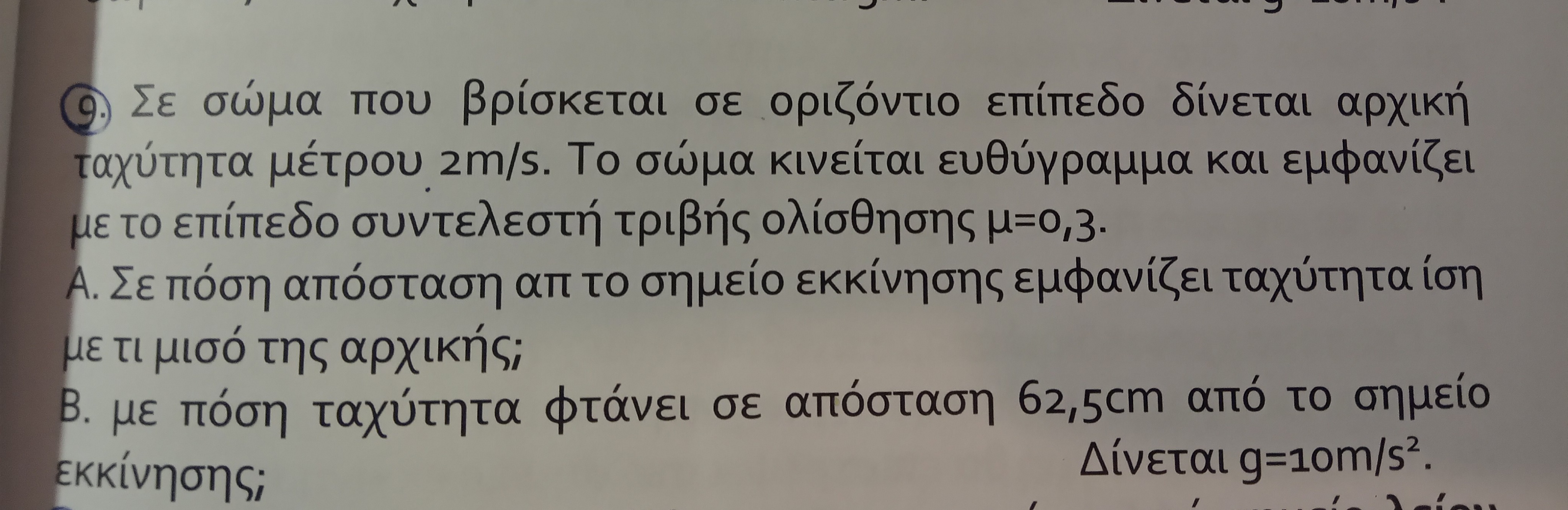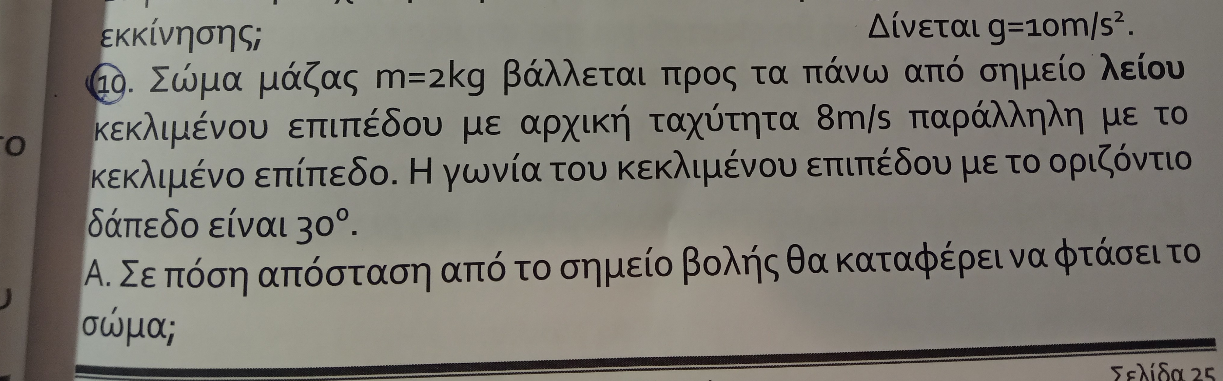 Νομάρχης Εκκολαπτόμενο μέλος Ο Νομάρχης αυτή τη στιγμή δεν είναι συνδεδεμένος. Έχει γράψει 172 μηνύματα. 25 Δεκεμβρίου 2022 στις 18:18 Ο Νομάρχης έγραψε: #2 25-12-22 18:18 Α. m*g*hmax = 1/2*m*v^2, όπου v η αρχική ταχύτητα, m η μάζα, hmax το μέγιστο ύψος και g η επιτάχυνση βαρύτητας. hmax = v^2/2g/ = 20 m. B. 3*m*g*h‘ (κινητική) + mgh‘ (δυναμική) = mghmax (ολική ενέργεια του συστήματος) —> 4mgh‘ = mghmax —> h‘=hmax/4 = 5 m. Γ. 1/2mv‘^2 + mghmax/2 = mghmax —> v‘^2 = hmax*g —> v‘ = 14.4 m/s