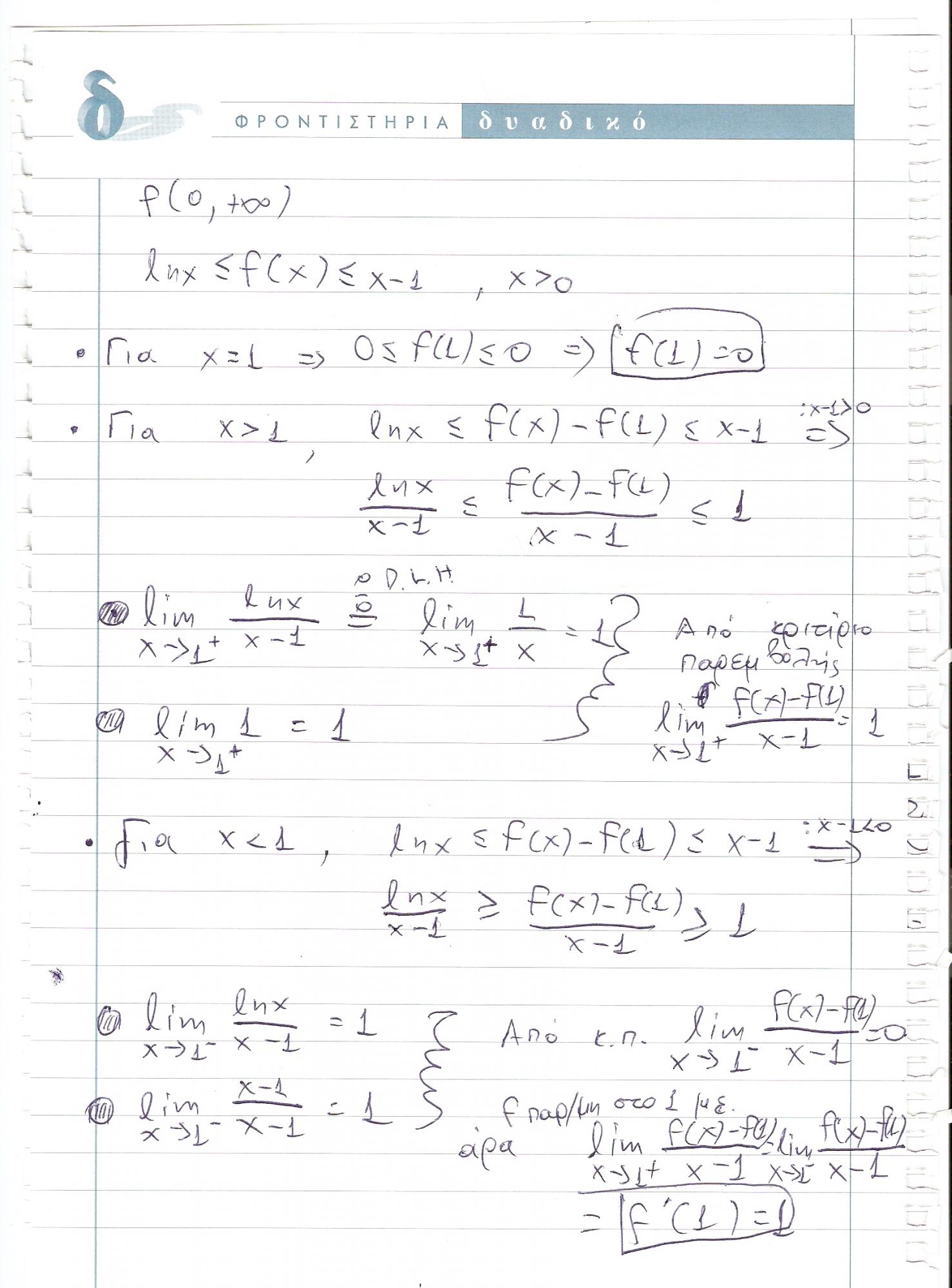 Να δειξετε οτι: α) η f ειναι παραγωγισιμη στο 1 και