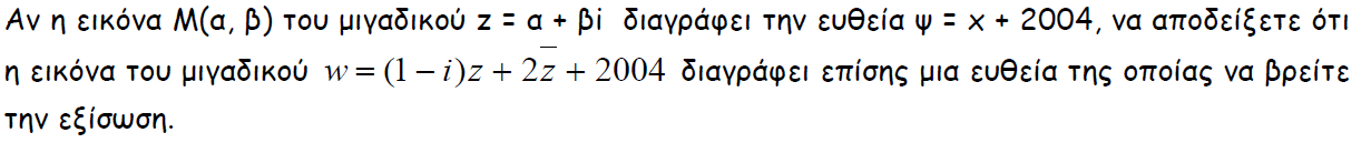 z = x + (x+2004)i , τον βάζεις στον w = χ' + y'i και βρίσκεις y' = f(x')