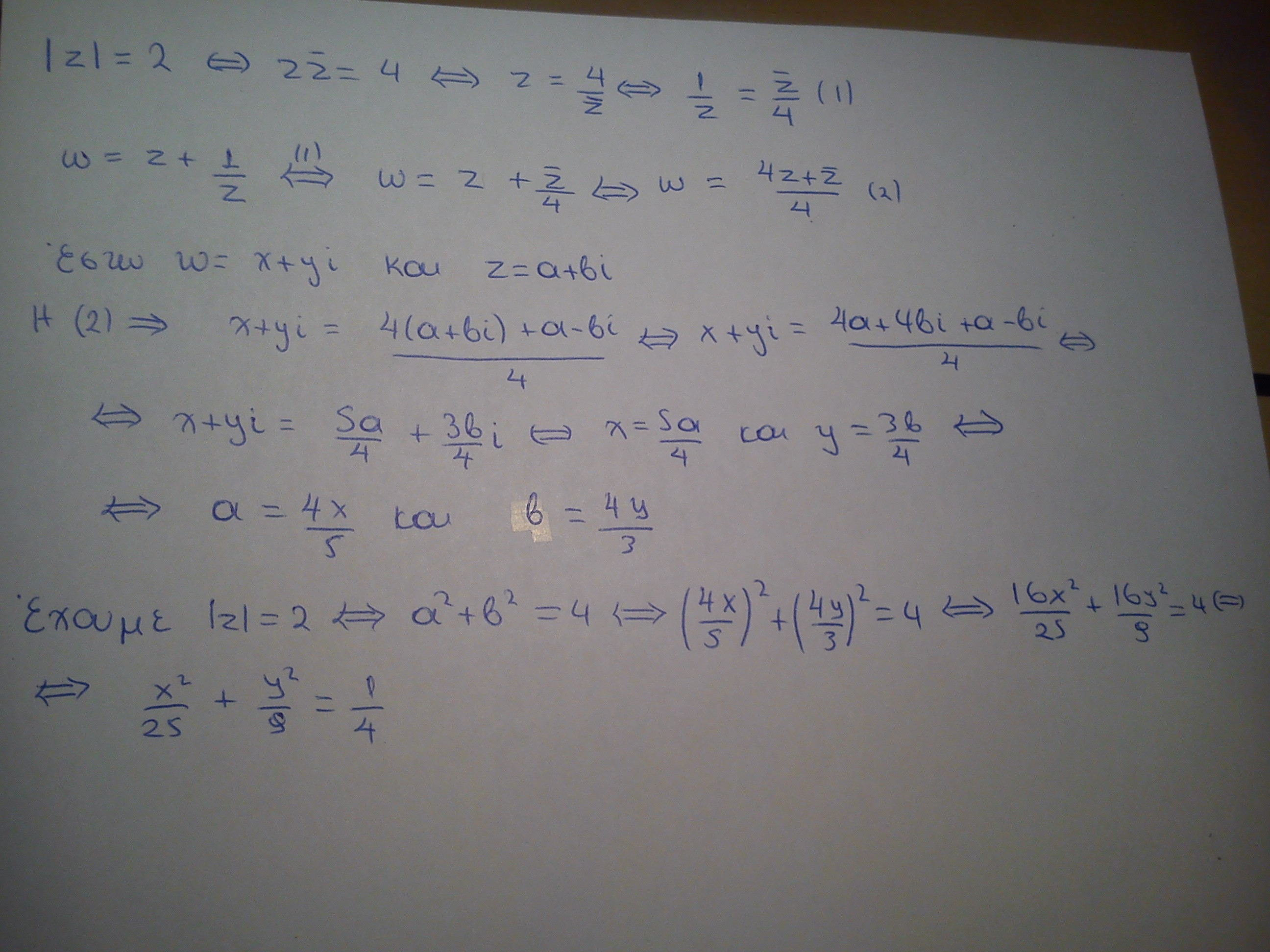 νδο γτ w είναι η έλλειψη x^2 /25 + y^2 /9 = 1/4