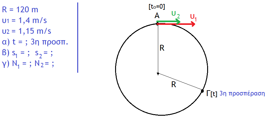 Ήξερα πως να το κανω μονος μου, εκανα και σχημα αλλα χρησιμοποιησα το Δφγρ=Δφαργ+Ν2π, και μετετρεψα τις γραμμικες ταχυτητες σε γωνιακες ταχυτητες και χαθηκα στα τεραστια νουμερα. Κρίμα ομως, ηταν πολυ καλή άσκηση.