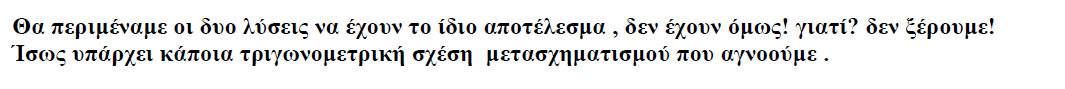 Τα αποτελέσματα ίδια είναι, αρκεί μόνο κάποιος να παρατηρήσει ότι η συνάρτηση arcsin είναι κατακόρυφη μετακίνηση της -arccos. Απλώς να σημειωθεί ότι οι σταθερές δεν είναι ίσες, αλλά στην πραγματικότητα διαφέρουν κατά π/2