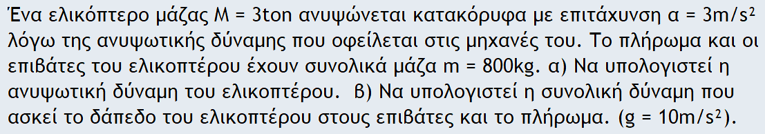 Μια εύκολη αλλά διδακτική άσκηση πάνω στους 4 (τέσσερεις) νόμους του Newton. Κατανόηση δράσης - αντίδρασης και ότι ο θεμελιώδης νόμος ΔΕΝ είναι F = m.α αλλά ΣF = m.α. Και ότι ο Newton ήταν Άγγλος και όχι ο ...Νεύτωνας που ήταν <<"αρχαίος Έλληνας φιλόσοφος που γεννήθηκε στα Άβδηρα της Μικράς Ασίας">>