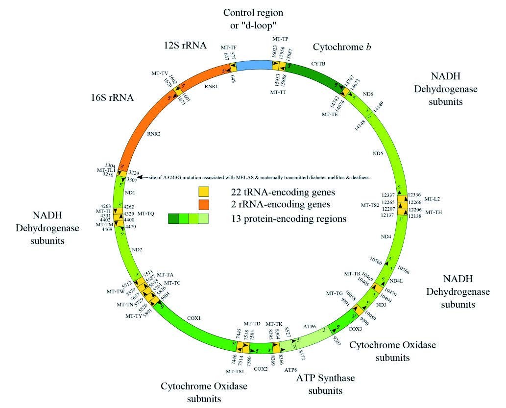 Τα μιτοχονδρια και οι χλωροπλαστες περιέχουν dna, ένζυμα και ριβοσώματα γεγονοσ που τους επιτρέπει να κάνουν τις βασικές πορείες του κεντρικού δόγματος άρα και μετάφραση.Παραλληλα περιέχουν πληροφοριεσ σχετικά με την λειτουργία τους.Μπορούμε να υποθέσουμε λοιπόν ότι μπορεί να έχουν στο γενετικό τους υλικό γονίδια rRNA και tRNA. Εικόνα με το μιτοχονδριακό DNA: