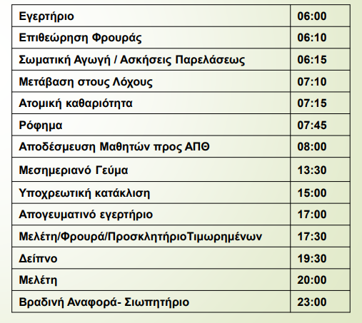 Πίστεψέ με, πολύ κομπλέ είναι. Το μόνο κακό στο στρατό είναι οι άνθρωποι, όχι το πρόγραμμα.Δεν θα άντεχα με τίποτα να κοιμάμαι μόνο 7 ώρες την ημέρα.