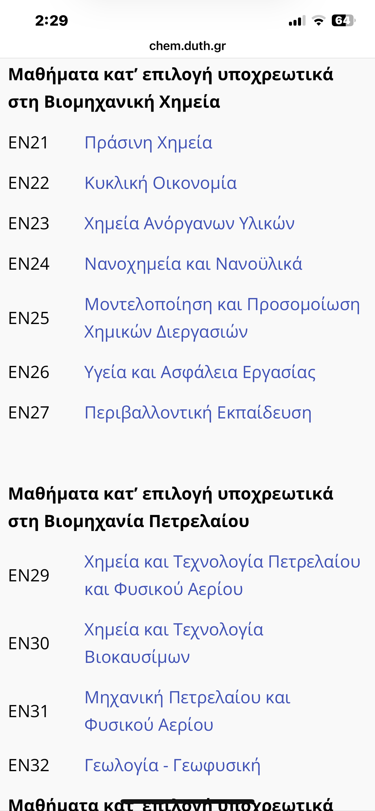 Μπαίνω στην σελίδα ΔΠΘ τμήμα Χημείας και βλέπω τα μαθήματα του νέου προγράμματος. Στο 7 ο εξάμηνο σου δίνει πέντε διαφορετικές κατευθύνσεις να επιλέξεις. Μπαίνω μετά στο ωρολόγιο πρόγραμμα σπουδών 2026-2026 και βλέπω δύο κατευθύνσεις . Επίσης βλέπω άλλα μαθήματα στο 1ο εξάμηνο πχ υγιεινή που δεν είναι στο νέο πρόγραμμα σπουδών. Δεν ξέρω τι γίνεται…..