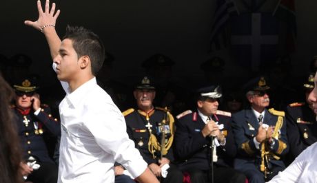 Η παρέλαση στη Λάρισα εξελισσόταν ήρεμα ώσπου ένας μαθητής σήκωσε το χέρι του, άνοιξε τη παλάμη του και μούτζωσε τους επισήμους καθώς πέρασε από μπροστά τους.