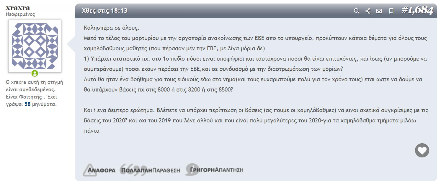 ΥΓ= Μήπως ξερετε κάτι για το post 1684 στην συζήτηση ΒΑΣΕΙΣ 2021 ΠΡΟΒΛΕΨΕΙΣ?