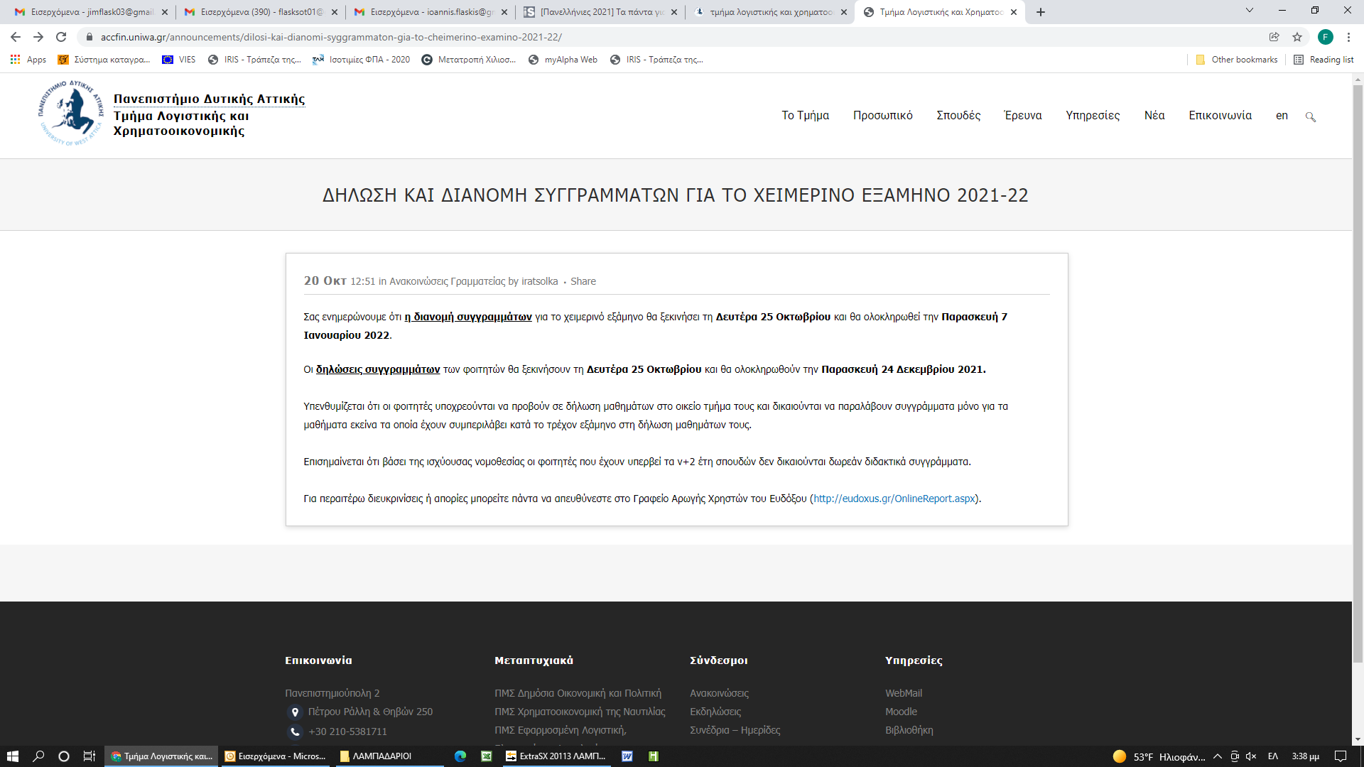 Γιάννη _00 ...μια διαπιστωση....Για χημικό ΑΠΘ. Έβγαλαν ανακοίνωση 6/12 για τα δικαιολογητικά, τους τα πήγα 8 και την ίδια μέρα μου έστειλαν κωδικούς για να ενεργοποιήσω τον ιδρυματικο.Οταν μπήκα στο φοιτητολογιο είδα ότι οι δηλώσεις μαθημάτων ήταν κλειστές για το τμήμα μου προφανώς, αλλά η γραμματεία είχε ήδη κάνει την δική μου οπότε απλα μπήκα στον Εύδοξο και έκανα και τη δήλωση βιβλίων.