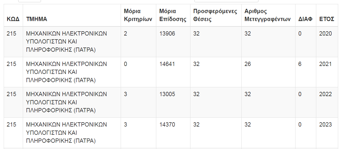 Ωχ την πατησα ..το 2022 ειναι το αγορι?... αστα θα τα κανω παλι απο την αρχηΤο σενάριο το κορίτσι Βολο μηχ. και απο εκεί και οι δυο Πατρα?? η σαμος και το Μηχανικών Ηλεκτρονικών Υπολογιστών και Πληροφορικής είναι αντίστοιχα και το 2022 είχε βάση 13.896. Επειδή είδα αυτό, το λεω: