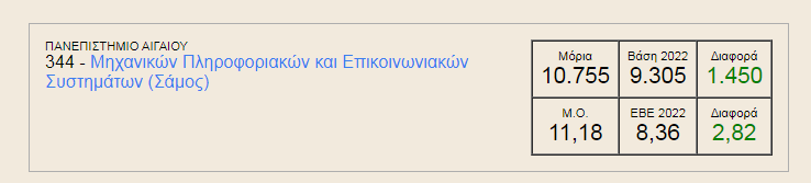 Το σενάριο το κορίτσι Βολο μηχ. και απο εκεί και οι δυο Πατρα?? η σαμος και το Μηχανικών Ηλεκτρονικών Υπολογιστών και Πληροφορικής είναι αντίστοιχα και το 2022 είχε βάση 13.896. Επειδή είδα αυτό, το λεω: