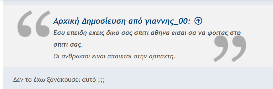 Δεν το έχω ξανάκουσει αυτό ;;;Εσυ επειδη εχεις δικο σας σπιτι αθηνα εισαι σα να φοιτας στο σπιτι σας.