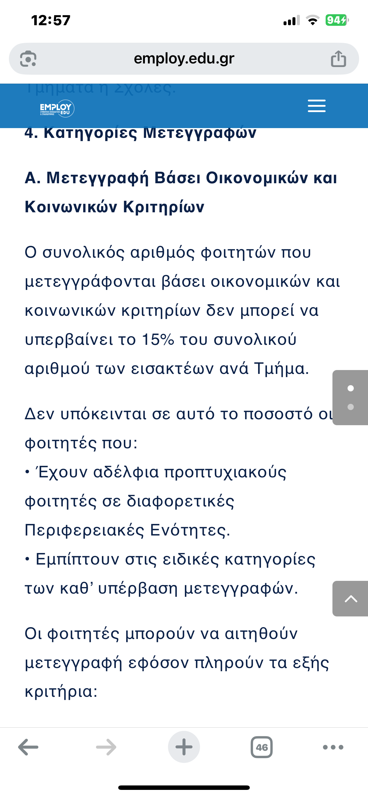 Οχι καλη μου δεν λεει αυτο..Εδώ λέει ότι δεν μπορούν να πάρουν μετέγραφη με οικονομικοκοινωνικα κριτήρια αυτοί που έχουν αδέρφια που σπουδάζουν σε άλλη πόλη. Τι παίζει;