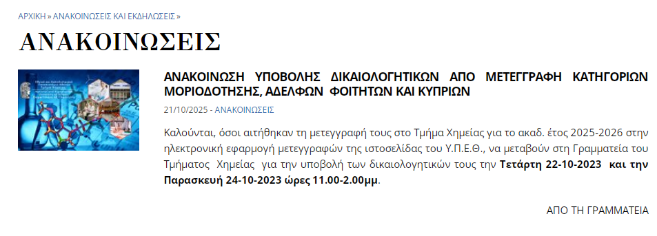 Καλησπέρα, μια ερώτηση, η αίτηση μετεγγραφής δεν χρειάζεται γνήσιο υπογραφής σωστά; Είδα και την ανακοίνωση στην σελίδα της σχολής και δεν ζήταγε γνήσιο (σε αντίθεση με άλλες σχολές του εμπ)