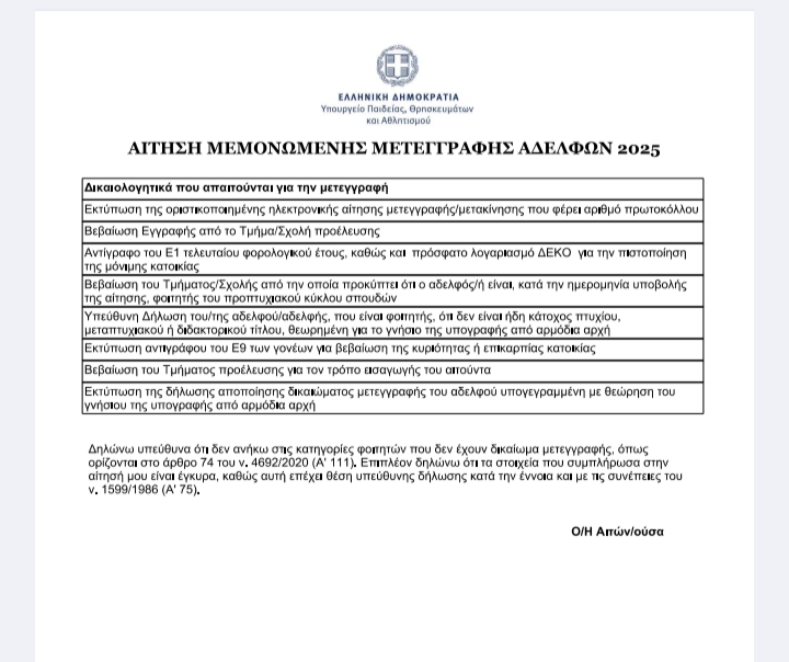Ναι, υποβληθηκε 9/10Ωραια... εχετε υποβαλει ηλεκτρονικα αποποιηση μετεγγραφης.