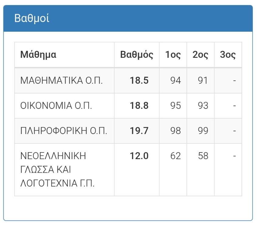 Γράφω και τους βαθμούς απο τρεις μαθητές μου που είχα ιδιαίτερο σε μαθηματικά ΚΑΙ φυσική.