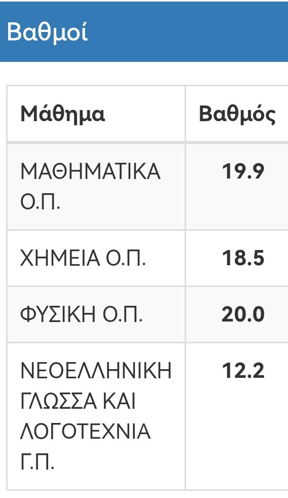 Συγχαρητήρια σε όλους!! Καλή φοιτητική ζωή και να είστε ανοιχτοί σε κάθε ευκαιρία. Το πανεπιστήμιο και η αγορά εργασίας δεν δίνει "δεκάρα" για τους βαθμούς των πανελληνίων αλλά ενδιαφέρεται για άλλα skills!! Καλό υπόλοιπο καλοκαιριού!!