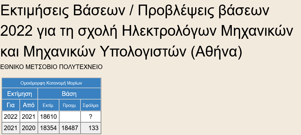Νομίζω έχει μειωθεί ο αριθμός εισακτεων στην Αθήνα. Γι' αυτό μάλλον ανεβαίνειΓια τη σχολη ΗΜΜΥ στην Αθηνα πιστευετε οτι θα πεσουν οι βασεις σε σχεση με περυσι? Η τελευταια εκτιμηση που ειδα απο ενα αξιοπιστο site για την συγκεκριμενη σχολη ηταν 18610 το οποιο μου φαινεται αρκετα παραδοξο, λαμβανοντας υποψη οτι οι επιδοσεις των μαθητων φετος στα μαθηματικα ηταν χαμηλοτερες σε σχεση με περυσι.