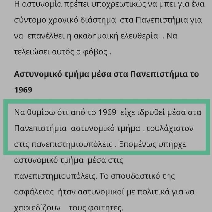 Όταν τελειώσουμε με τον #covid19gr (σε καμιά 20αρια χρόνια) θα γίνεται η τηλεκπαίδευση στα πανεπιστήμια, οπότε δεν έχει νόημα να λεμε για αστυνομία στις σχολές