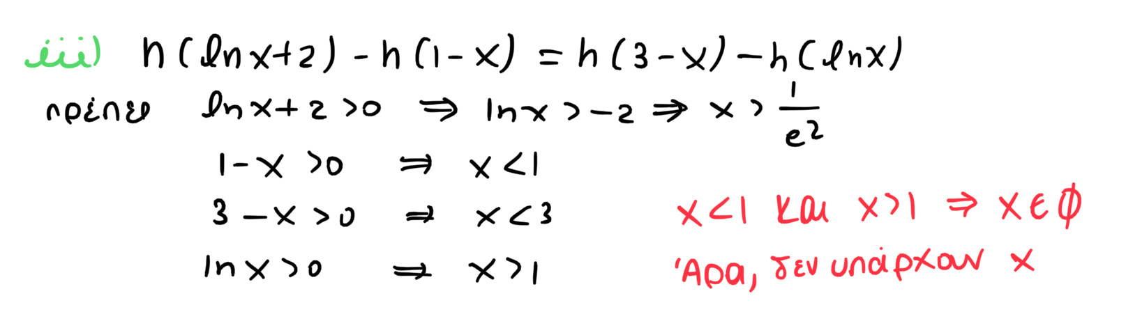 Παίζει να κάνω λάθος, αλλά στο Δ2.iii), εφόσον αυτά μέσα στην h πρέπει να είναι μεγαλύτερα του 0, το πεδίο ορισμού για την εξίσωση δε βγαίνει κενό (x>1 και x<1);View attachment 107005
