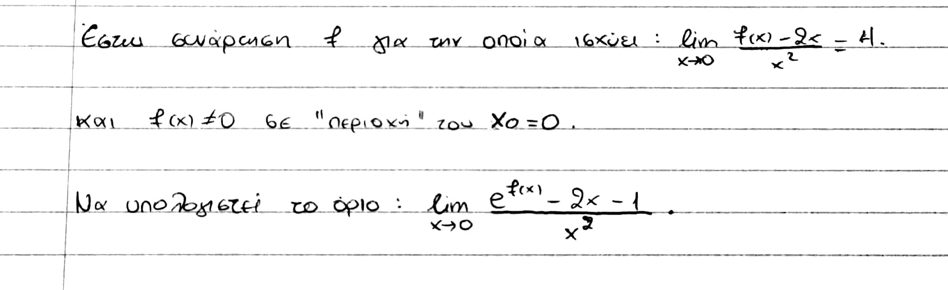 lim [e^f(x) - 2x - 1]/x² =Μια ωραία