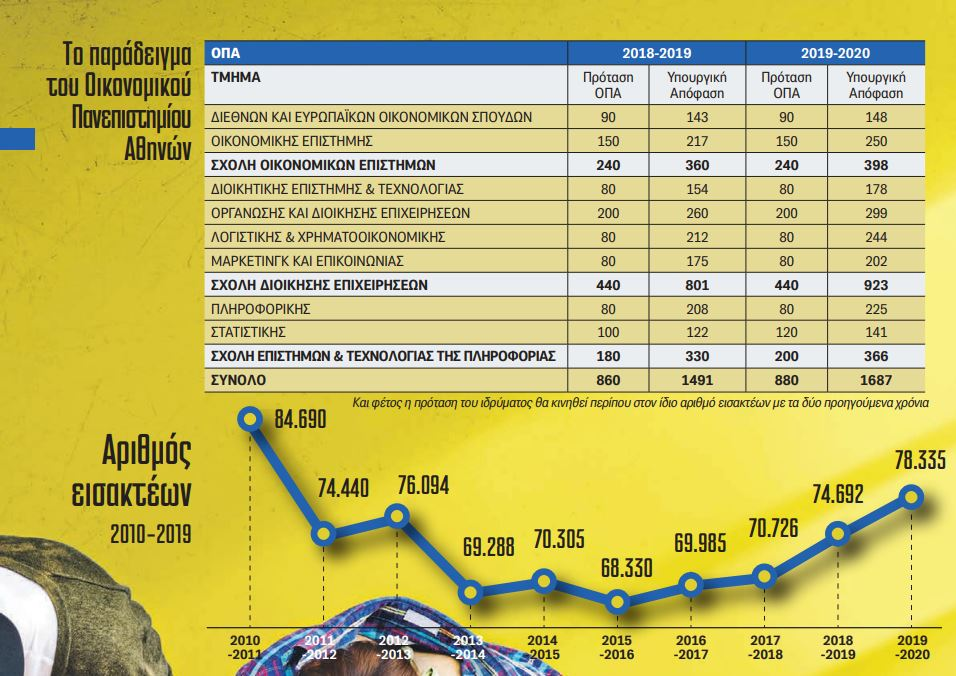 Για τις μειώσεις των εισακτέων στα διάφορα τμήματα - που μου ακούγεται αρκετά πιο φυσιολογική και ήπια λύση, σε σχέση με το «λαϊκιστικό» κλείσιμο τμημάτων - απλά να αναφέρουμε ότι η ευθύνη βαραίνει κυρίως τα εκάστοτε υπουργεία. Ενδεικτικά, στο ΟΠΑ τα δύο τελευταία έτη είχαμε: