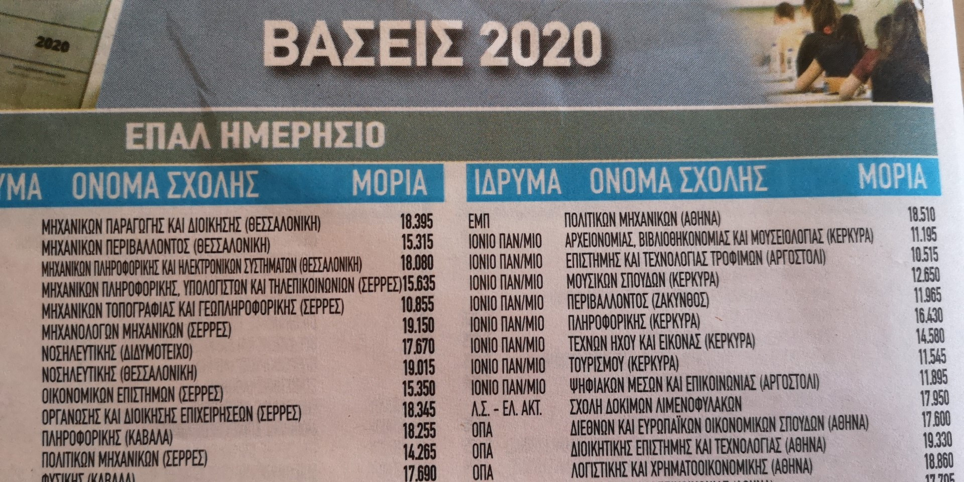Βάσεις 2020 - Σε ποιο τμήμα περάσατε;