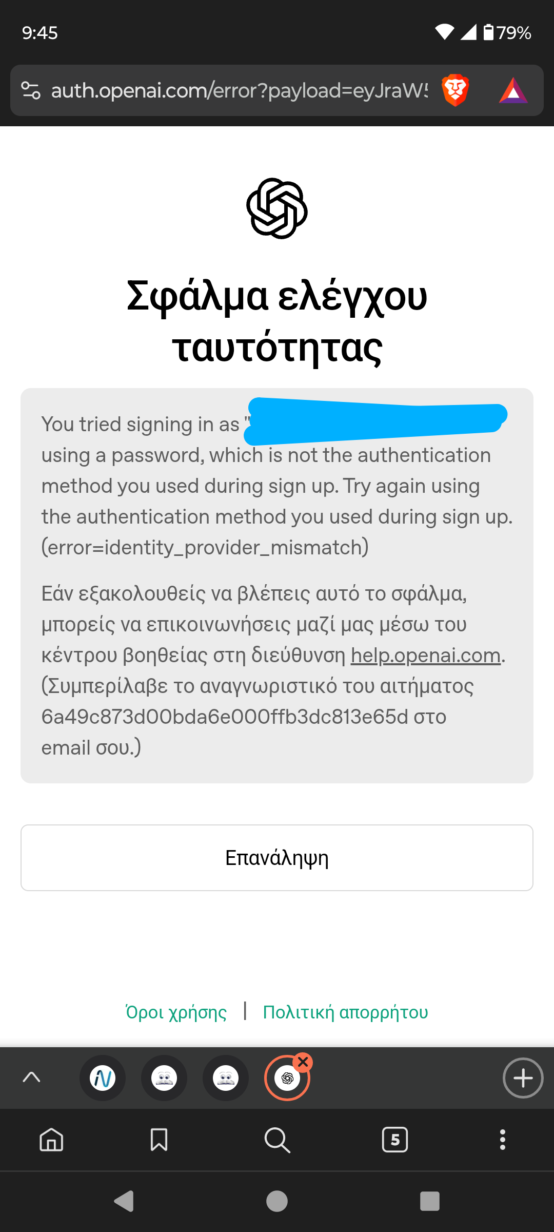 View attachment 146062Καλησπερα, η προβολη του σφαλματος το λεει εδω καθαρα: "Προσπαθήσατε να συνδεθείτε με κωδικό πρόσβασης, αλλά αυτός δεν είναι ο τρόπος που χρησιμοποιήσατε κατά την αρχική εγγραφή. Δοκιμάστε να συνδεθείτε χρησιμοποιώντας την ίδια μέθοδο ταυτοποίησης που χρησιμοποιήσατε αρχικά." Θα πρεπει προφανωςνα εισαγετε τον ιδιο κωδικο που δημιουργησατε τον λογαριασμο και οχι κατι αλλο.