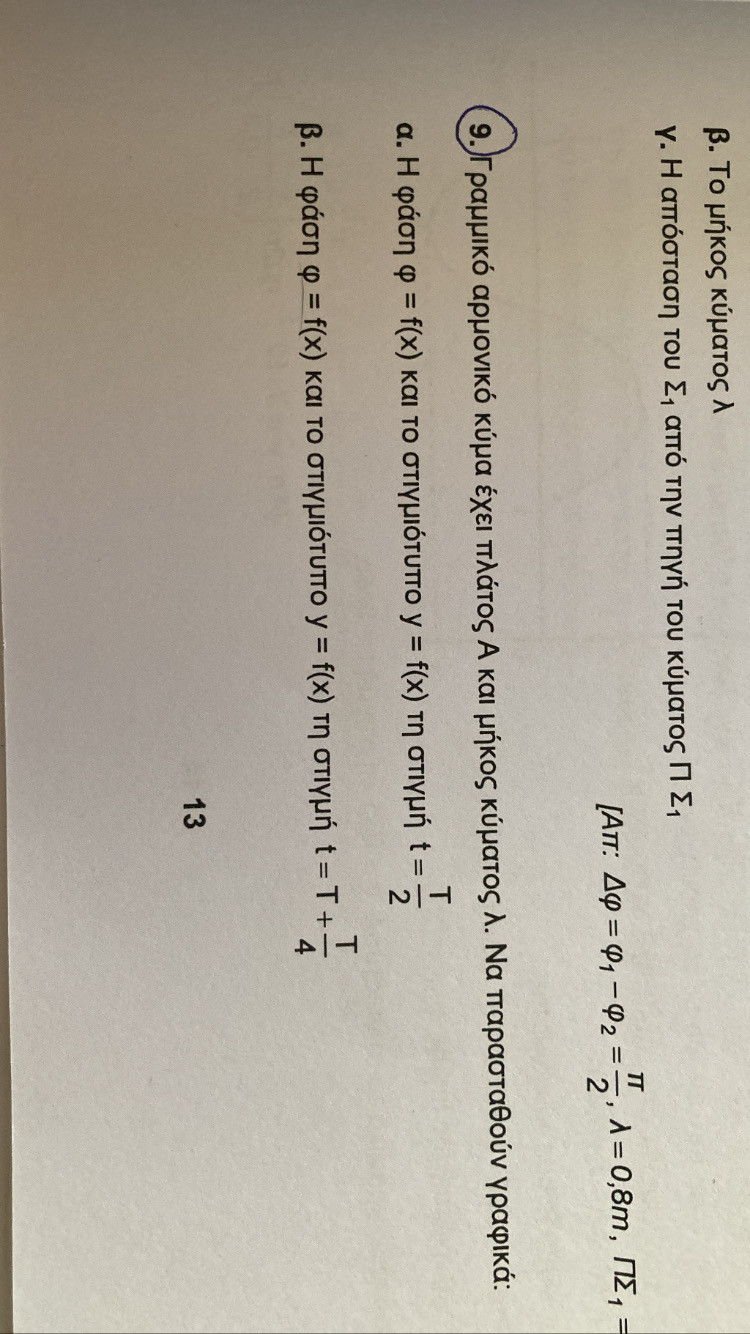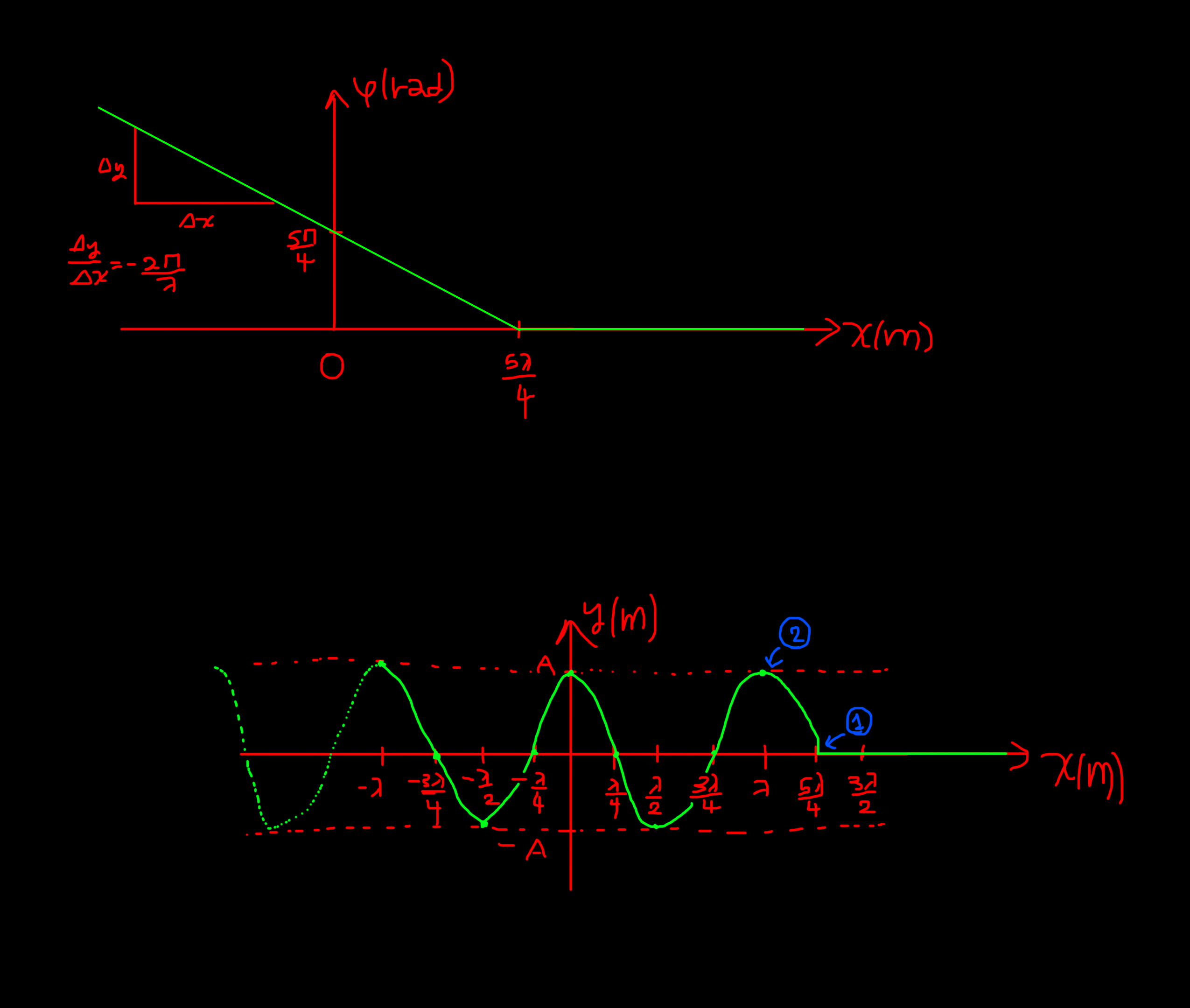 Δηλαδή θα σχεδιάσεις μια ευθεία για την φάση, που για x = 0 θα παίρνει την τιμή 5π/2, και θα έχει κλίση -2π/λ.
