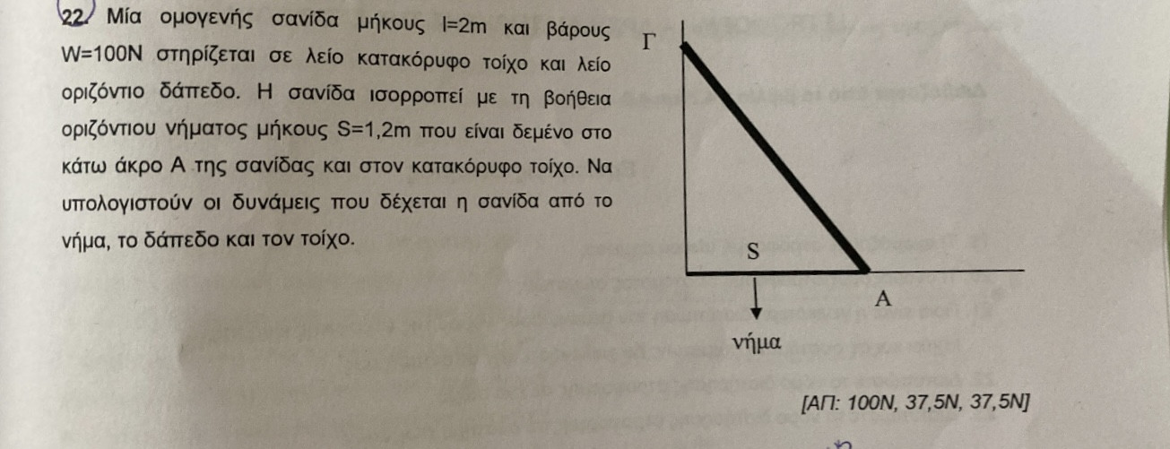 Σημειώνουμε μια δύναμη αντίδρασης Ν1 απο τον τοίχο και μια άλλη δύναμη αντίδρασης απο το δάπεδο.