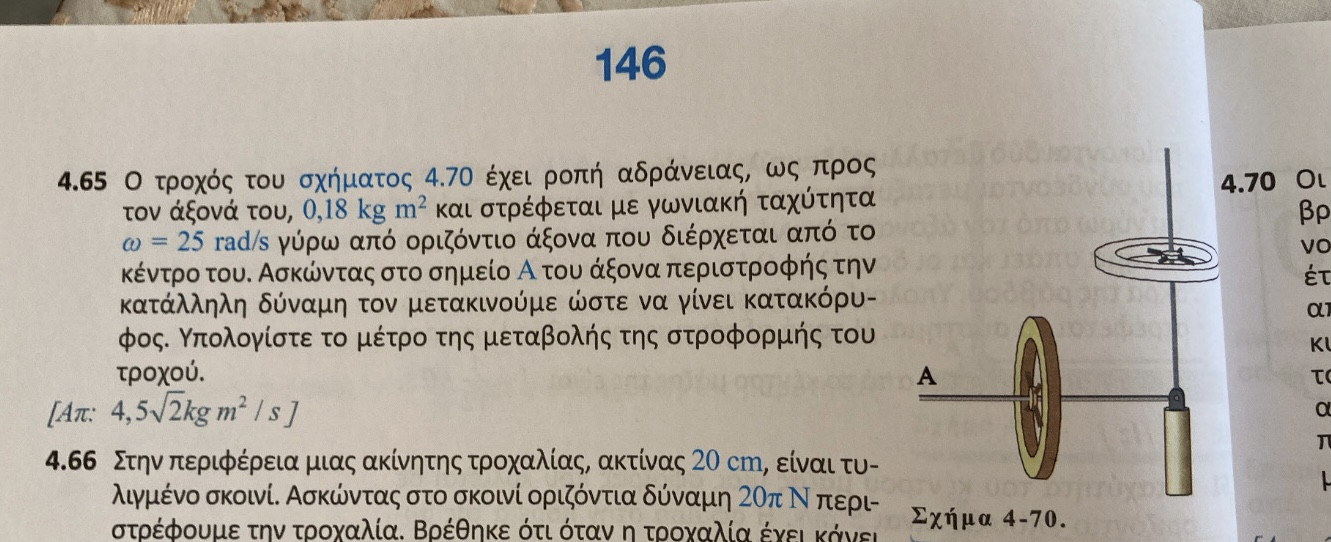 Η δύναμη της τάσης του νήματος όμως προκαλεί ροπή η οποία τείνει να περιστρέψει τον κύλινδρο δεξιόστροφα(ας πούμε θετική φορά αυτή).