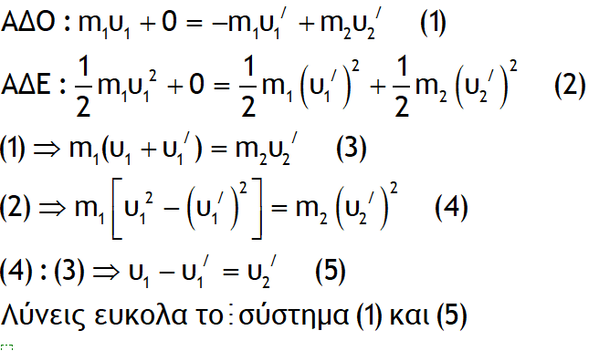 υπολογίσετε τις ταχύτητες των σωματων αμεσως μετα την κρούση